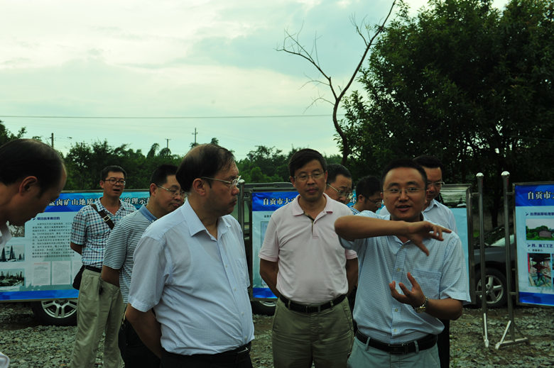 8月4日,四川省國土資源廳黨委書記、廳長楊冬生來到省地勘院承擔的自貢大安區(qū)鹽鹵礦山地質環(huán)境綜合治理工程項目現(xiàn)場,督導檢查工程實施情況。該項目針對主城區(qū)附近的礦山地質環(huán)境進行綜合治理,這在全國尚屬首例。