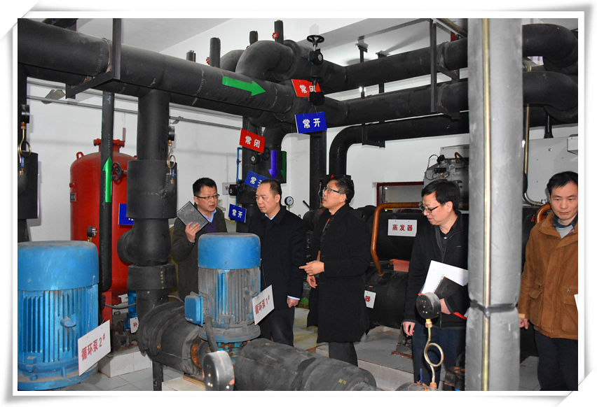 1月12日上午,成都市國土資源局黨組書記、局長胡斌一行來我院調(diào)研指導工作,詳細詢問并了解成都市淺層地溫能的開發(fā)利用情況。在院領(lǐng)導的陪同下,胡斌局長一行參觀考察了我院設計建設的省級可再生能源公共建筑示范工程——成都水文隊科研用房地源熱泵中央空調(diào)工程。