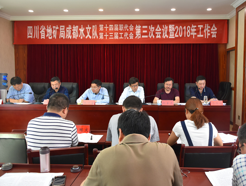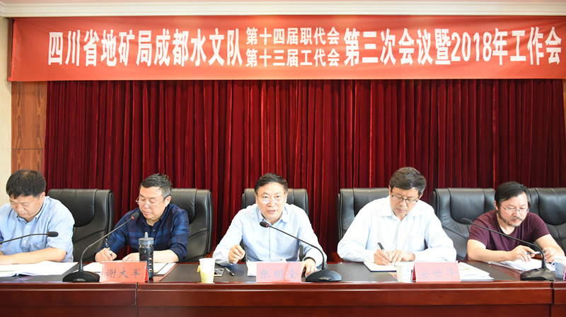 4月28日,四川省地礦局成都水文隊第十四屆職工代表大會第三次會議(以下簡稱職代會)、第十三屆工代會第三次會議(以下簡稱工代會)于2018年4月28日在隊部副樓五樓會議室召開,來自全隊各部門、各實體的職工代表正式代表、列席代表共90余人參加了會議。局黨委常委、副局長張明全、四川省地質工會副主席劉金光、局規(guī)劃發(fā)展處副處長周曉耀出席會議。會議由隊黨委書記謝大軍主持。