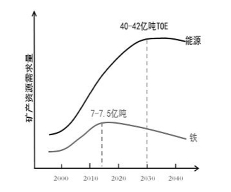 王安建教授認為,工業(yè)化是人類將自然資源轉(zhuǎn)化為財富的過程,是人類大量耗費自然資源、迅速積累社會財富、快速發(fā)展經(jīng)濟、大幅度提高人民生活水平的過程。當基礎(chǔ)設(shè)施建設(shè)、城鎮(zhèn)化和社會財富積累達到一定水平、工業(yè)化進入成熟期、經(jīng)濟結(jié)構(gòu)發(fā)生重大變化時,重要礦產(chǎn)資源消費量開始下降,能源消費速率開始趨緩。