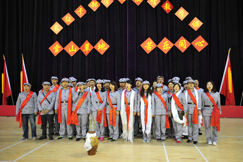 培訓(xùn)期間,隊伍打紅旗,學(xué)員穿紅軍服、戴紅軍帽、背紅軍包、纏綁腿、系皮帶、戴校徽,出行列隊整齊有序,成為一支紅色勁旅。學(xué)員們通過“吃紅軍飯、唱紅軍歌、走紅軍路”的培訓(xùn)形式,經(jīng)過長征歷史理論教學(xué)、參觀馬爾康紅軍長征紀(jì)念館現(xiàn)場教學(xué)、過草地穿越日干喬大沼澤體驗教學(xué),學(xué)習(xí)紅軍隊伍的堅強斗志,體驗紅軍長征中的艱難困苦。